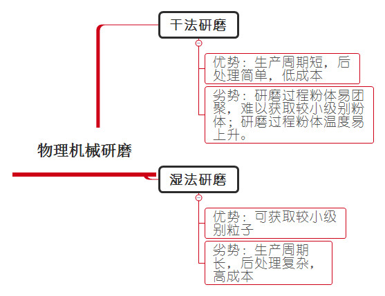 機械干法研磨較難獲取亞微米級別的粉體,化學制粉成本高,因此濕法研磨成為制備超細粉體的一個重要手段。從實際應用來看,這兩者之間并沒有絕對的優劣之分,要根據實際的產品特點及經濟效益來選取適當的處理方法。